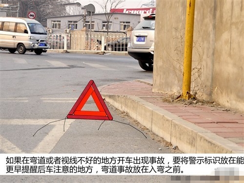 在彎路行駛出現(xiàn)事故更要特別注意,一定要將三角警示牌放置在你入彎前的道路上,因為彎路駕駛后車駕駛員如果不通過路邊設立的“凸面鏡”是無法看到前面彎道的情況,因此要將警示牌放在入彎前的路門面上,告知車輛減速慢行,避免因后車不能及時得到提示導致“二次事故”的發(fā)生。