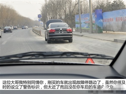 如果你的車是在一個(gè)坡路出現(xiàn)故障無法移動(dòng)的話,請(qǐng)你一定要把警示牌放在事故放在坡頂或者坡低,這樣才能提早提示后車注意,因?yàn)檐囕v行駛在坡路上會(huì)產(chǎn)生盲區(qū),如果你把警告標(biāo)識(shí)放在坡道上,它就是失去了提前提醒后車注意的功能。因此切記,坡路事故要將警告標(biāo)識(shí)放在坡底或者坡頂。