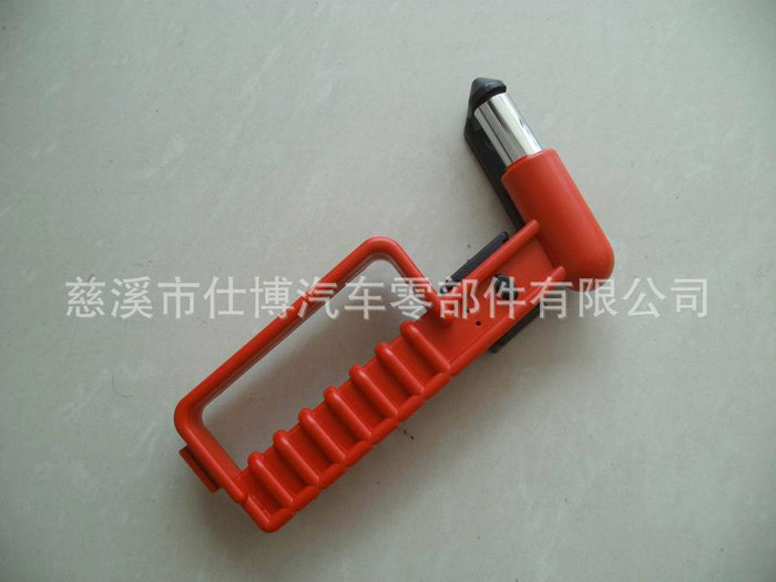 一種封閉艙室里的輔助逃生工具。它一般安裝于于汽車等封閉艙室內(nèi)容易取到的地方,在發(fā)生車內(nèi)出現(xiàn)火災(zāi)或汽車落入水中等緊急情況下,可以方便取出并砸碎玻璃窗門以順利逃生。 用途:主要用于緊急情況下敲碎玻璃逃生用錘子敲擊玻璃手柄尾部刀片用于割斷安全帶逃生。 范圍:主要用于大巴、客運(yùn)車輛、火車等車輛配置。 使用方法: 安全錘主要是利用其圓錐形的尖端,由于尖頭的接觸面積很小,因此當(dāng)用錘砸玻璃時(shí),該接觸點(diǎn)對玻璃的壓強(qiáng)(不是壓力,而是單位面積上的壓力)相當(dāng)大,這個(gè)跟圖釘?shù)脑碛悬c(diǎn)相似,膜很容易就被刺破,且使車玻璃在該點(diǎn)受到很大的外作用力而產(chǎn)生輕微開裂,而對于鋼化玻璃而言,一點(diǎn)點(diǎn)的開裂就意味著整塊玻璃內(nèi)部的應(yīng)力分布受到了破壞,從而在瞬間產(chǎn)生無數(shù)蜘蛛網(wǎng)狀裂紋,此時(shí)只要輕輕的用錘子再砸?guī)紫戮湍軐⒉A槠宄簟? 另外,鋼化玻璃的中間部分是最牢固的,四角和邊緣是最薄弱的。最好的辦法是用安全錘敲打玻璃的邊緣和四角,尤其是玻璃上方邊緣最中間的地方,一旦玻璃有了裂痕,就很容易將整塊玻璃砸碎。
