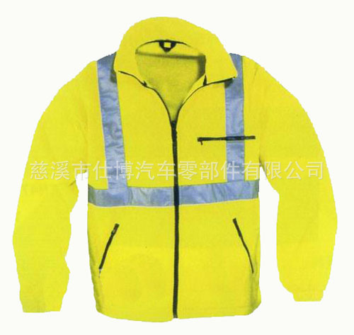 反光帶有偏黃、偏綠、白色多種顏色,網(wǎng)布有紅黃藍三種顏色,反光效果好,能使人在較暗或是夜晚清晰的看到。套裝具有雨淋作用。