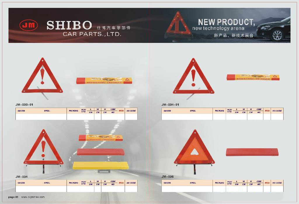 我司產(chǎn)品采用日本進(jìn)口反光模芯制造, ABS+PMMA材質(zhì),原產(chǎn)地浙江寧波.通過國家公安部交通安全產(chǎn)質(zhì)量監(jiān)督檢測中心檢測符合GB19151-2003《機動車用三角警示牌》的要求,執(zhí)行標(biāo)準(zhǔn):Execute Standard CMVDR127。近日,本廠在原來的產(chǎn)品基礎(chǔ)上開發(fā)研制成功電子閃光三角警示牌。由原來的發(fā)光距離200M一下提高到500M,使駕者在高速行駛中更能提前在安全范圍外見到前面的車輛情況,從而有足夠的時間處理各方面的問題達(dá)到更加安全的目的。
